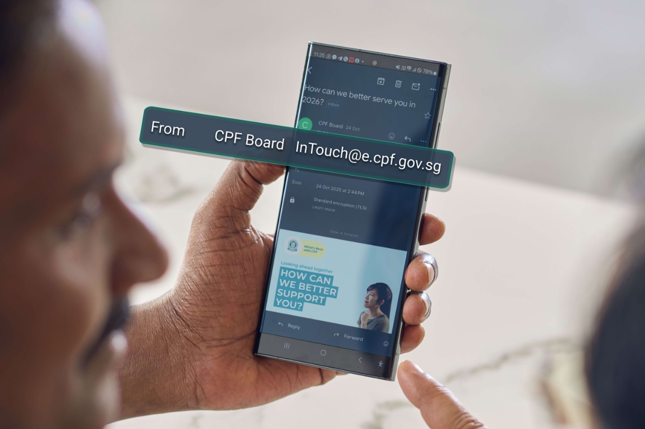 Beware of scammers impersonating CPF Board. We will never ask you to transfer your money or provide sensitive personal information. Look out for these details.
